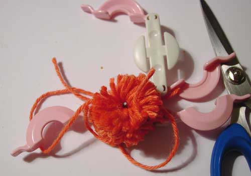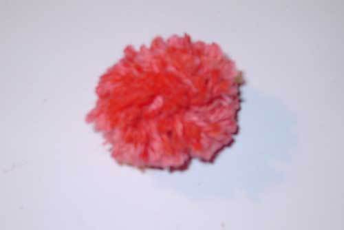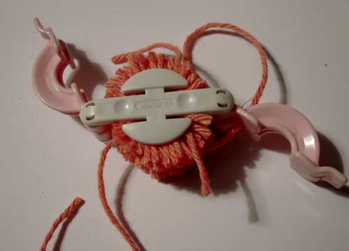 Jetzt kommt der Wollfaden in die Mitte. Fest anziehen und zusammenknoten