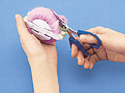 scharfen Schere schneiden Sie das Garn den gesamten Kreis entlang